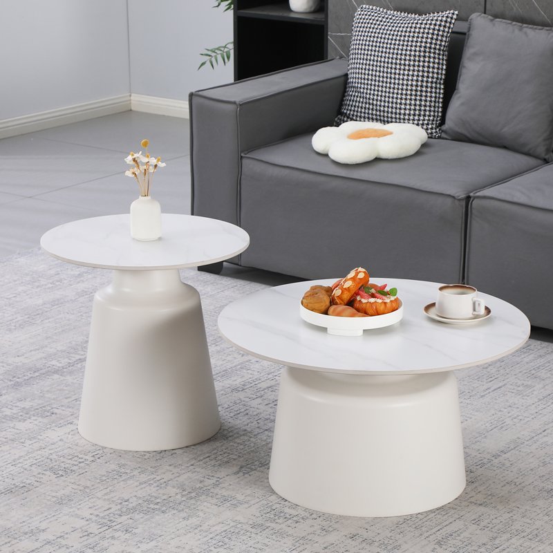 Τραπέζια σαλονιού Dualis pakoworld σετ 2 τεμ μέταλλο-sintered stone σε λευκό μαμρμάρου