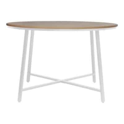 Τραπέζι Gianno μελαμίνη σε φυσική απόχρωση και πόδι λευκό μέταλλο Φ120×76εκ