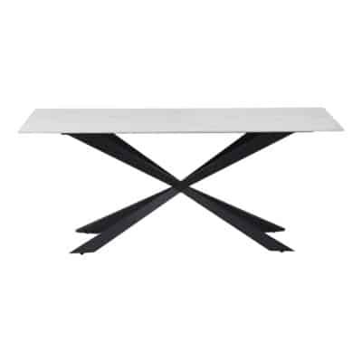 Τραπέζι Cozline Inart λευκό μαρμάρου sintered stone-πόδι μαύρο μέταλλο 180x90x76εκ