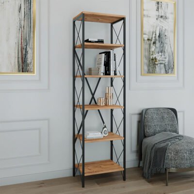 Βιβλιοθήκη-στήλη PWF-0321 πεύκο – μαύρος μεταλλικός σκελετός 50x30x180εκ