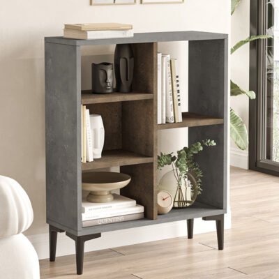 Βιβλιοθήκη χαμηλή Neville cement-καρυδί 69x25x87.6εκ