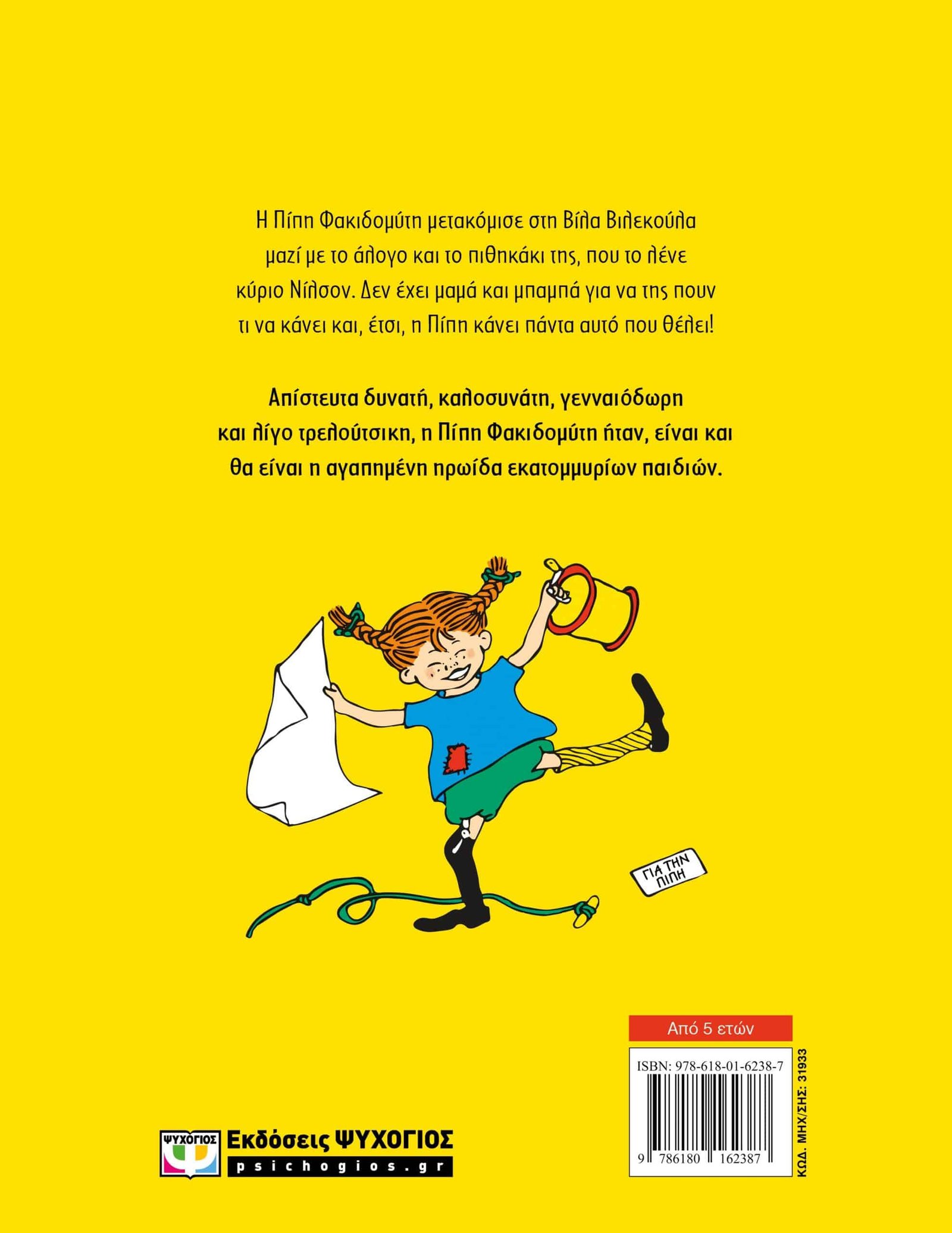 Η Πίπη Φακιδομύτη μετακόμισε στη Βίλα Βιλεκούλα μαζί με το άλογο και το πιθηκάκι της, που το λένε κύριο Νίλσον. Δεν έχει μαμά και μπαμπά για να της πουν τι να κάνει· κι έτσι, η Πίπη κάνει πάντα αυτό που θέλει!Απίστευτα δυνατή, καλοσυνάτη, γενναιόδωρη και λίγο τρελούτσικη, η Πίπη Φακιδομύτη ήταν, είναι και θα είναι η αγαπημένη ηρωίδα εκατομμυρίων παιδιών.