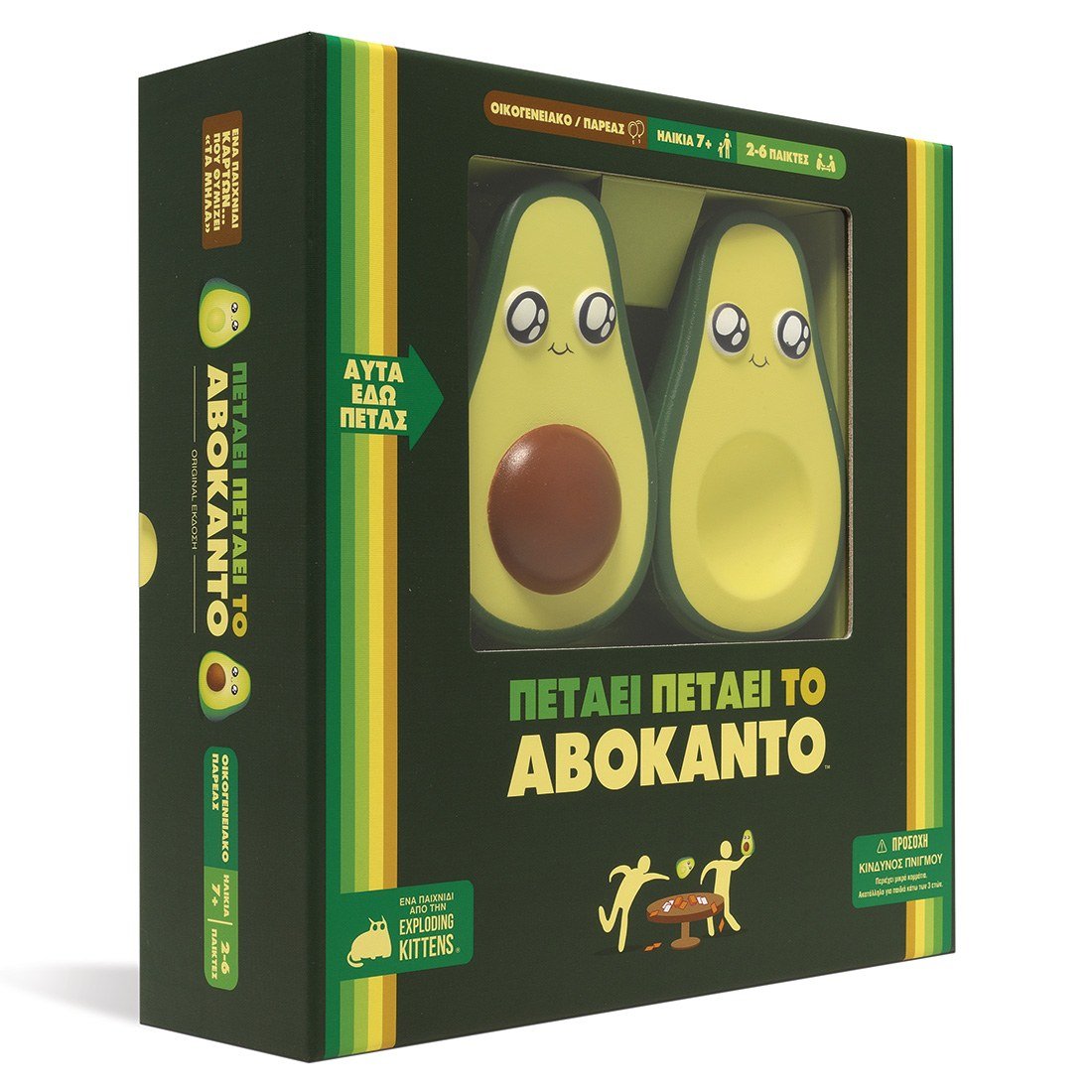 Αυτό είναι ένα παιχνίδι ΠΑΡΕΑΣ που δε μοιάζει με κανένα άλλο που έχετε παίξει μέχρι τώρα. Είναι ένας συνδυασμός μεταξύ παιχνιδιού με κάρτες και Μήλων. Ναι τα κλασικά Μήλα, που παίζουμε στο σχολείο, αυτό που πετάς μπάλες ο ένας στον άλλο. Εδώ, οι παίκτες συγκρούονται μεταξύ τους συλλέγοντας κάρτες, κερδίζοντας πόντους και πετώντας ο ένας στον άλλο… Αβοκάντο, μικρά μαλακά Αβοκάντο! Πρέπει να θυμάστε μόνο 3 πράγματα: Μαζέψτε κάρτες, παίξτε κάρτες, ρίξτε αβοκάντο στους φίλους σας. Τελικά Πετάει Πετάει το Αβοκάντο;