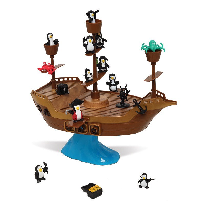 Αααργκ, βίρα τις άγκυρες! Είσαι έτοιμος για λίγη διασκέδαση; Προσπάθησε να τοποθετήσεις πάνω στο καράβι τους πιγκουίνους πειρατές, αλλά πρόσεξε μην κουνήσεις το καράβι και βρεθούν όλοι στη θάλασσα! Θα τα καταφέρεις ή θα αρχίσεις να κολυμπάς;Εξασκήστε τη λεπτή κινητικότητα και τη σκέψη. Ιδανικό για παιδιά και όλη την οικογένεια!