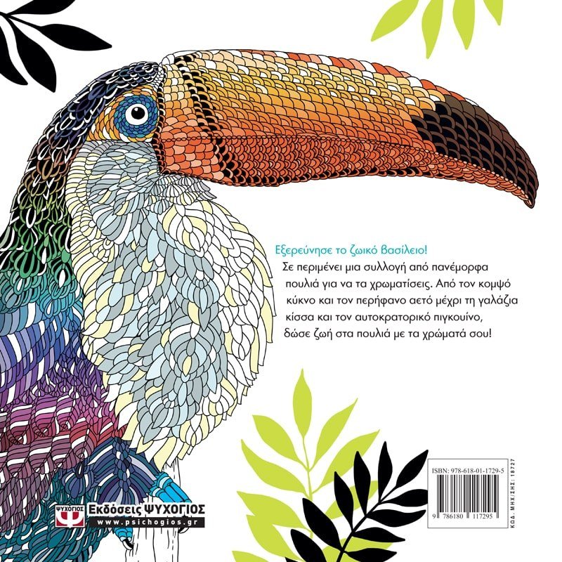 Εξερεύνησε το ζωικό βασίλειο! Σε περιμένει μια συλλογή από πανέμορφα πουλιά για να τα χρωματίσεις. Από τον κομψό κύκνο και τον περήφανο αετό μέχρι τη γαλάζια κίσσα και τον αυτοκρατορικό πιγκουίνο, δώσε ζωή στα πουλιά με τα χρώματά σου!